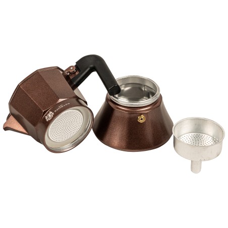 Dzięki pojemności 300 ml (około 6 filiżanek espresso), model TERESA jest idealny na poranne pobudzenie lub popołudniową przerwę z aromatyczną kawą. Kawiarka została wyposażona w ergonomiczny uchwyt z tworzywa sztucznego, zapewniający wygodę i bezpieczeństwo użytkowania, oraz zawór bezpieczeństwa, który chroni przed nadmiernym ciśnieniem.