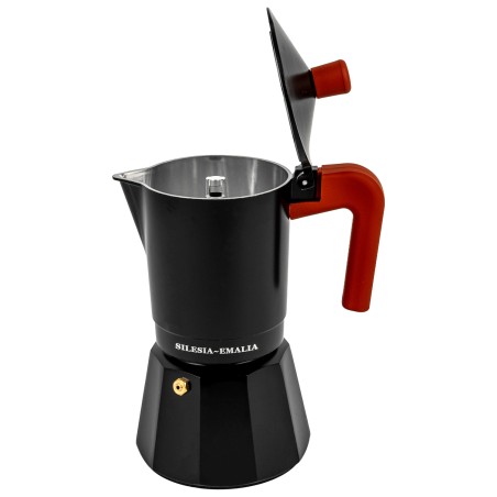 Poznaj urok włoskiej tradycji parzenia kawy z wyjątkową kawiarką – połączeniem klasycznego designu i nowoczesnych rozwiązań. Ta aluminiowa kawiarka moka została zaprojektowana z myślą o estetach i smakoszach – zachwyca czarnym kolorem oraz stylowym uchwytem o kolorze czerwonym.