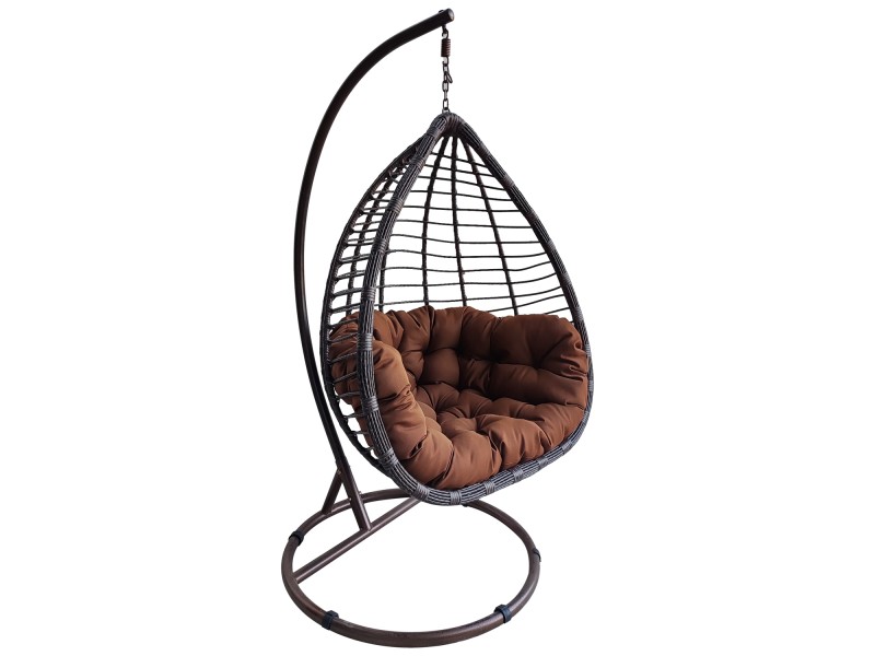 Kosz ma przestronne wnętrze, a miękka poduszka w kolorze czekoladowego brązu gwarantuje wygodę nawet podczas dłuższego siedzenia. Brązowy stelaż i kosz w połączeniu z naturalną kolorystyką tworzą elegancki, nowoczesny wygląd, który pasuje do każdej aranżacji ogrodu lub wnętrza. Fotel typu kokon sprawdzi się doskonale podczas wypoczynku z książką, porannej kawy, czy chwili ciszy po dniu pracy.