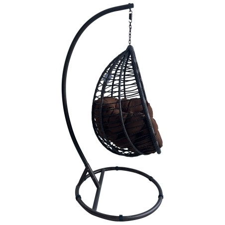 Kosz ma przestronne wnętrze, a miękka poduszka w kolorze czekoladowego brązu gwarantuje wygodę nawet podczas dłuższego siedzenia. Brązowy stelaż i kosz w połączeniu z naturalną kolorystyką tworzą elegancki, nowoczesny wygląd, który pasuje do każdej aranżacji ogrodu lub wnętrza. Fotel typu kokon sprawdzi się doskonale podczas wypoczynku z książką, porannej kawy, czy chwili ciszy po dniu pracy.