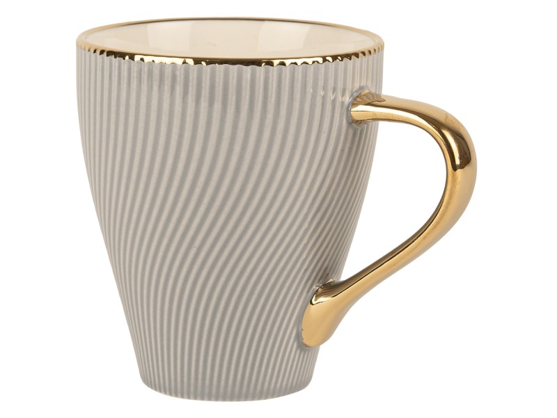Uwagę przyciąga efektowny, złoty uchwyt o błyszczącym wykończeniu, który nadaje kubkowi unikalny wygląd i sprawia, że staje się on nie tylko praktycznym naczyniem, ale również dekoracyjnym akcentem w każdej kuchni. To doskonały wybór dla osób ceniących sobie estetykę, detale i włoski styl.