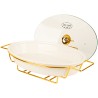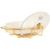 Naczynie o owalnym kształcie i ponadczasowym białym kolorze doskonale komponuje się ze złotym stojakiem ze stali nierdzewnej, dodając stylu każdemu stołowi. Dzięki zastosowaniu wysokiej jakości ceramiki naczynie jest odporne na temperatury w zakresie od 20°C do 160°C, co sprawia, że możesz je wykorzystać zarówno do serwowania potraw na zimno, jak i na gorąco. Stojak z funkcją podgrzewacza pozwala na dłuższe utrzymanie idealnej temperatury serwowanych dań.