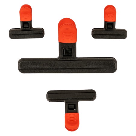 Ten zestaw klipsów jest niezwykle funkcjonalny, a jego różne rozmiary umożliwiają dopasowanie do różnych opakowań i potrzeb. Dzięki czarnemu kolorowi z delikatnym odcieniem czerwieni, klipsy będą pasować do każdego wnętrza kuchennego.