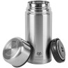 Srebrny termos na obiad 1 l nie tylko skutecznie przechowuje gorące potrawy, ale również prezentuje się elegancko i nowocześnie. Połyskujące wykończenie oraz kompaktowy, poręczny kształt sprawiają, że świetnie sprawdzi się zarówno w torbie pracownika biurowego, jak i w plecaku podczas wycieczki. Szeroki otwór (8 cm) ułatwia napełnianie i jedzenie bezpośrednio z termosu, a pokrywka z przyciskiem do upuszczania ciśnienia zapewnia komfortowe i bezpieczne otwieranie, nawet przy gorących potrawach.